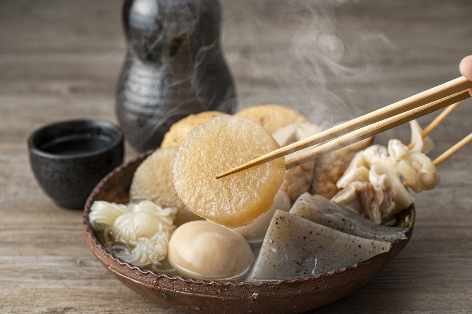 大根・玉子・牛すじなど定番の看板おでんはもちろん、仕入れによって変わる旬の具材や一品料理もご用意しています。出汁の旨みを活かした優しい味わいは、お酒との相性も抜群。初めての方にはセットメニューもおすすめです。